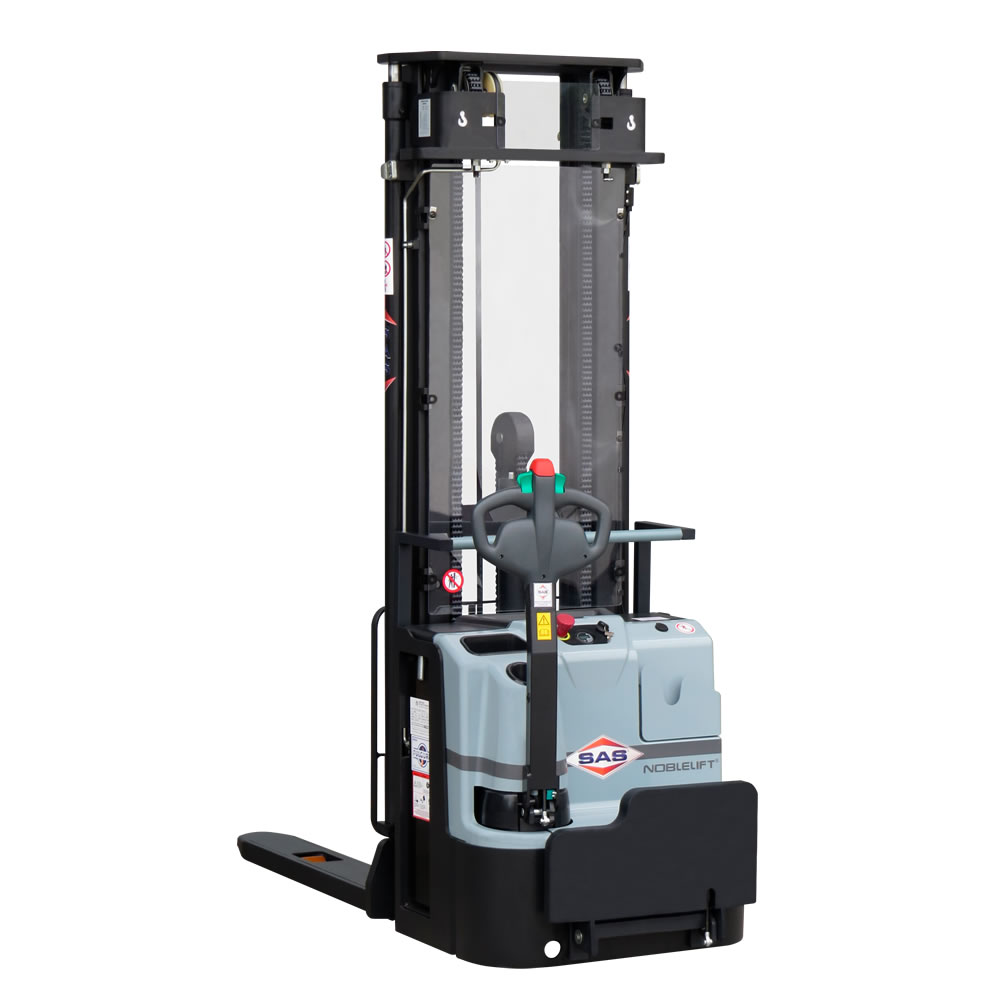 Timão com tecnologia CANBUS, quantidade de cabos reduzida evita quebra por esforço de torção. Botões magnéticos reduzem custos de manutenção e oferecem sensibilidade nos comandos. Em conjunto com o controlador ZAPI esse timão permite uma aceleração progressiva e eficiente, além de permitir controle da velocidade de subida e descida dos garfos.